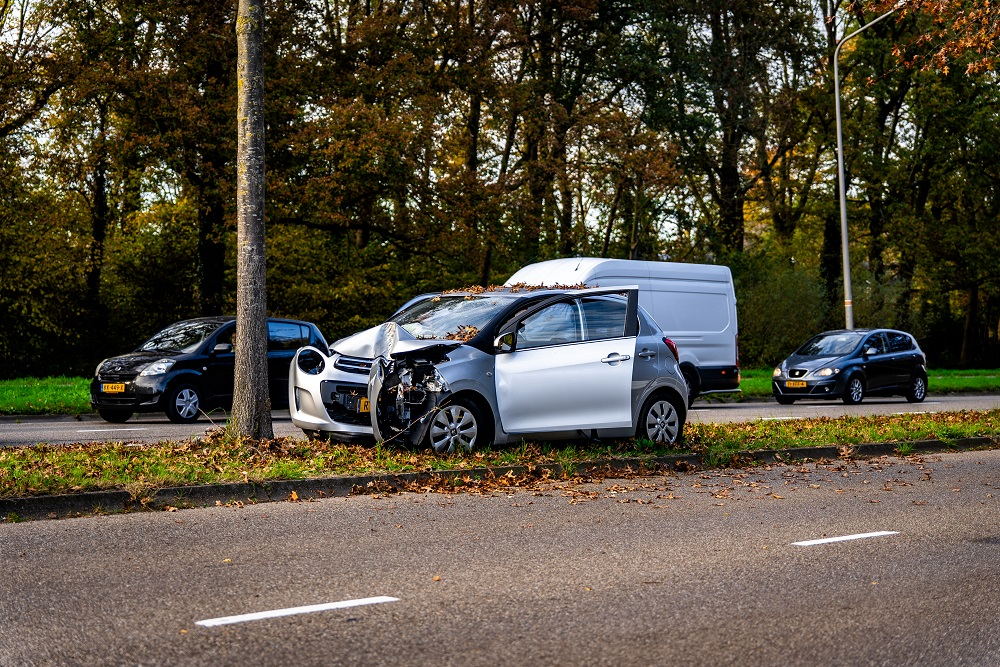 Een auto kwam daar, door nog onbekende oorzaak, tot stilstand tegen een boom in de middenberm. De bestuurder is ter plaatse nagekeken door ambulancepersoneel en met onbekend letsel naar het ziekenhuis gebracht.