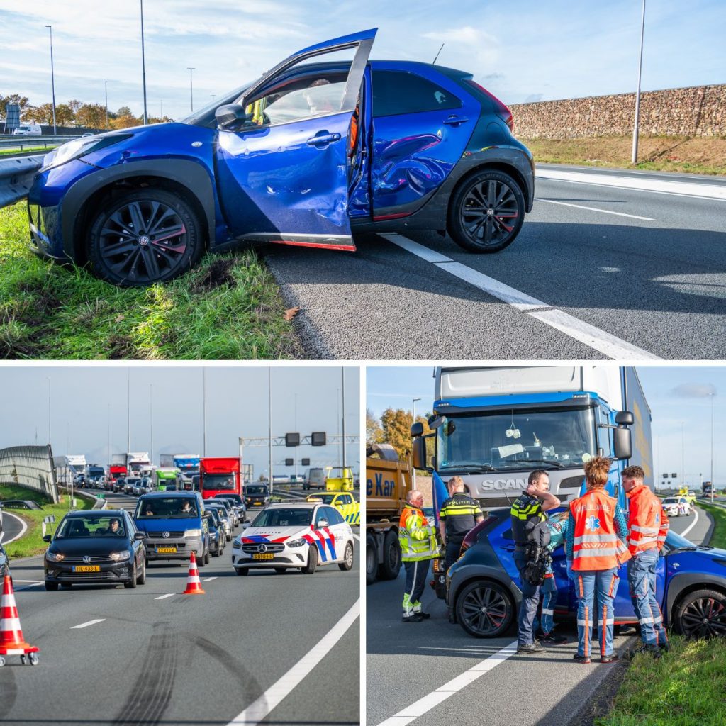 Op de A58 tussen Breda en Etten-Leur heeft zich dinsdagochtend een ongeval voorgedaan tussen een personenauto en een vrachtwagen. De auto kwam dwars voor de vrachtwagen tot stilstand, waarbij op het wegdek lange remsporen zichtbaar waren.
