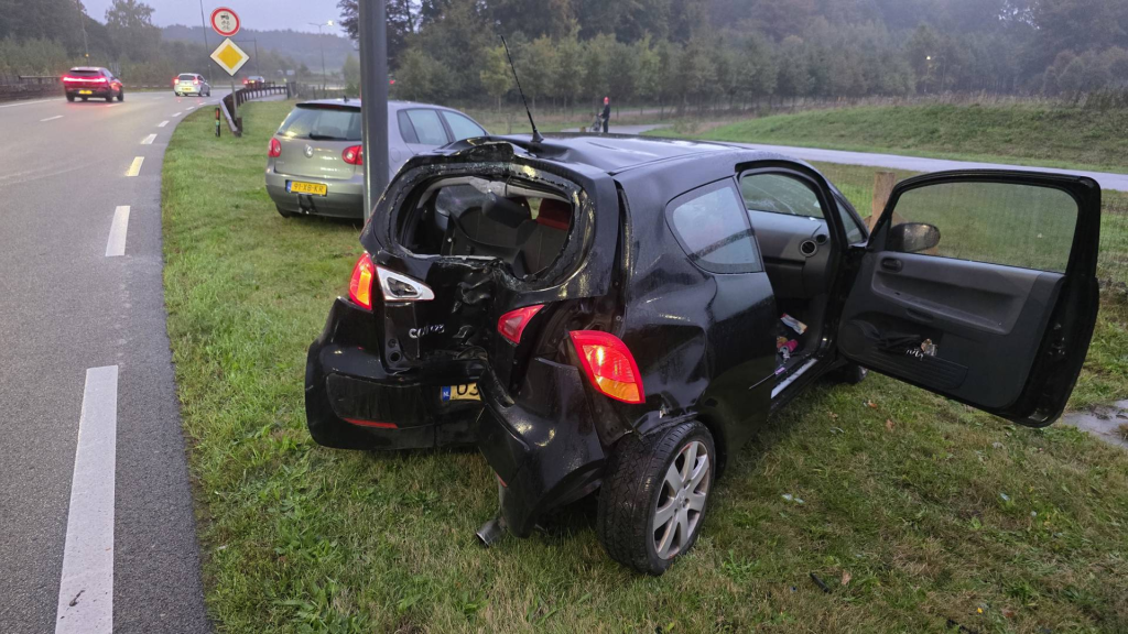 De auto liep zware schade op en wordt als verloren beschouwd. Een bergingsbedrijf heeft het voertuig afgevoerd.