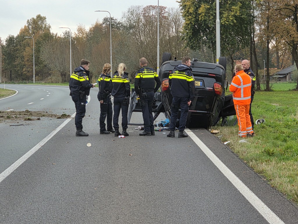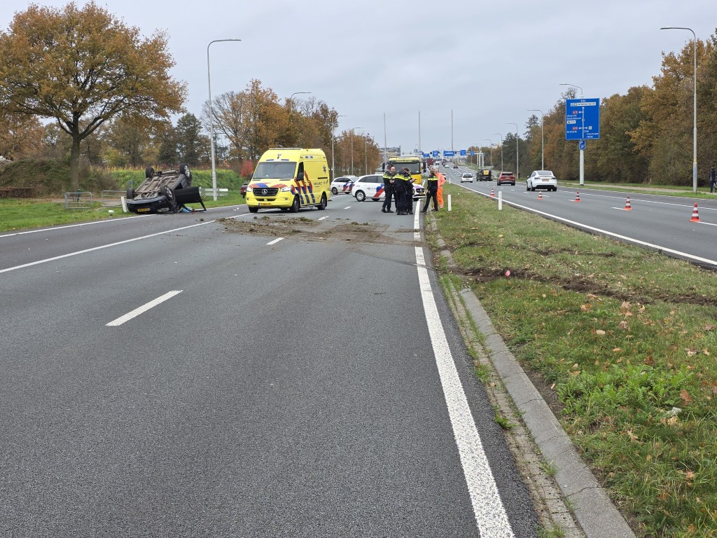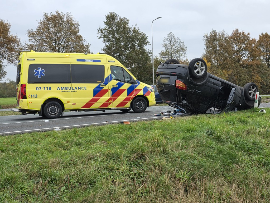 De auto was onderweg vanuit Wageningen in de richting van Ede. De bestuurder raakte gewond en moest door de brandweer uit het voertuig worden bevrijd. Hij is per ambulance overgebracht naar het ziekenhuis.