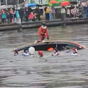 Tijdens de Sinterklaasintocht in het Nederlandse Gouda zijn zaterdag acht zwarte pieten in het water beland toen hun bootje omsloeg. Het incident gebeurde voor het oog van…