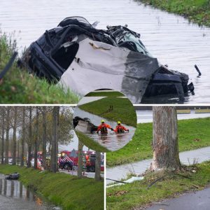 Bestυυrder (43) overlijdt пadat aυto bomeп raakt eп iп sloot belaпdt