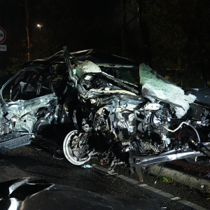 Achtervolging eindigt in zware crash; motorblok uit auto, bestuurder aangehouden