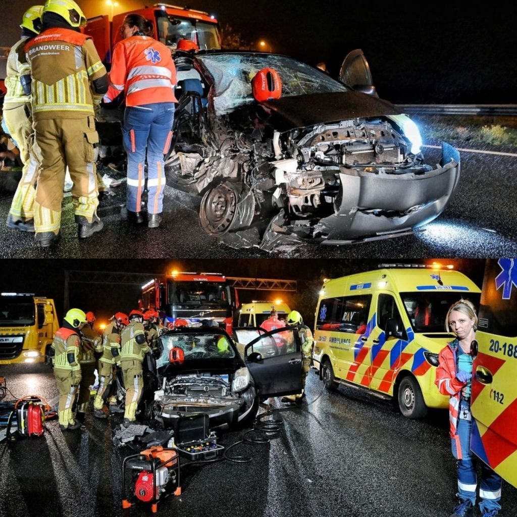 Auto botst op brandweerauto na botsing, A58 bij Tilburg hele ochtend dicht