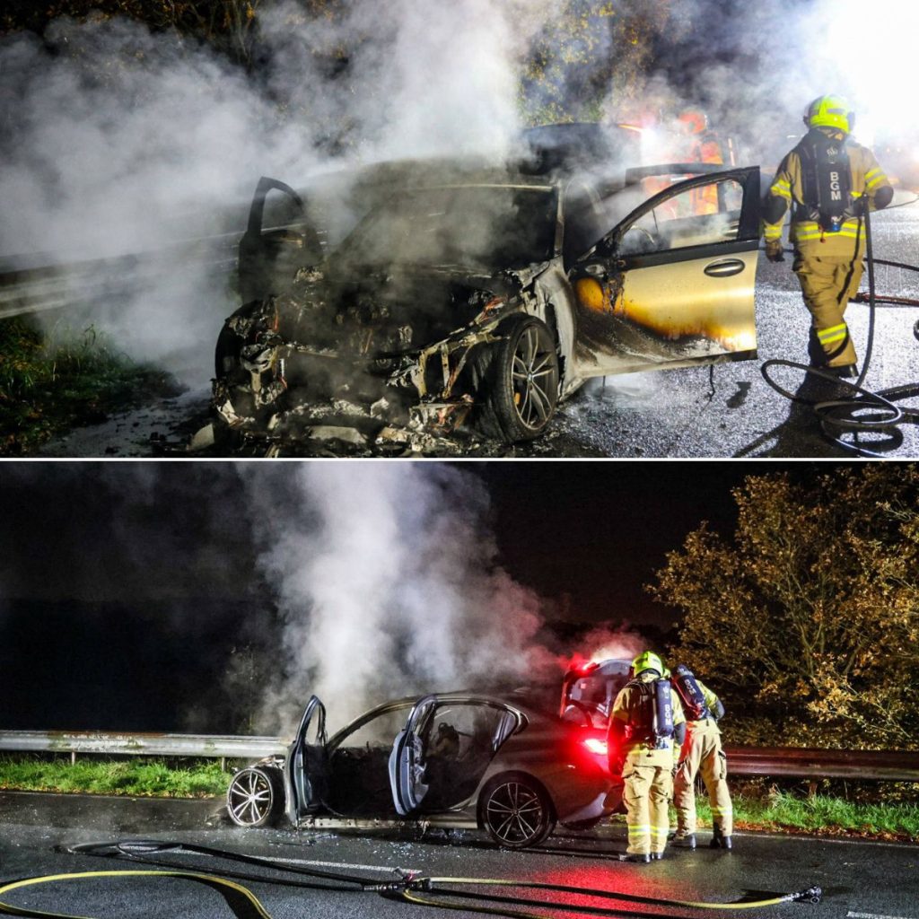 De bestuurder reed direct naar een parkeerhaven langs de N225. Kort daarna sloegen de vlammen uit de motorkap en vatte de voorkant van het voertuig vlam. De auto brandde uiteindelijk volledig uit.