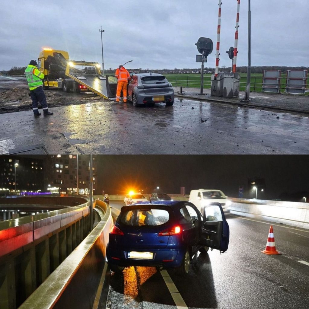 Een automobilist is zaterdagochtend door een afzetting op de N33 bij Appingedam gereden. Daarna strandde hij met zijn auto op de Eelwerderbrug in een werkvak.