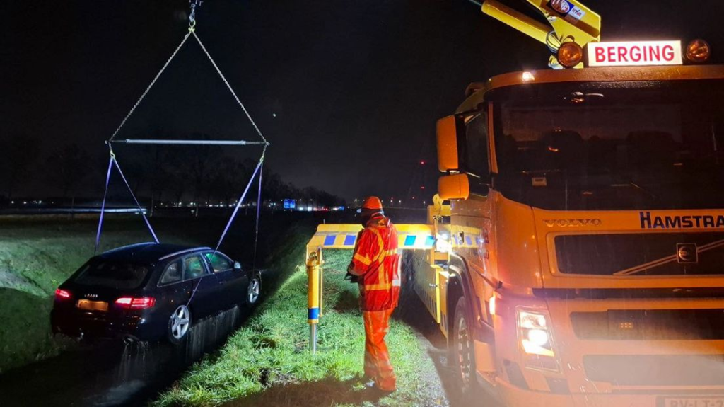 02:00 Auto in de sloot bij Veendam