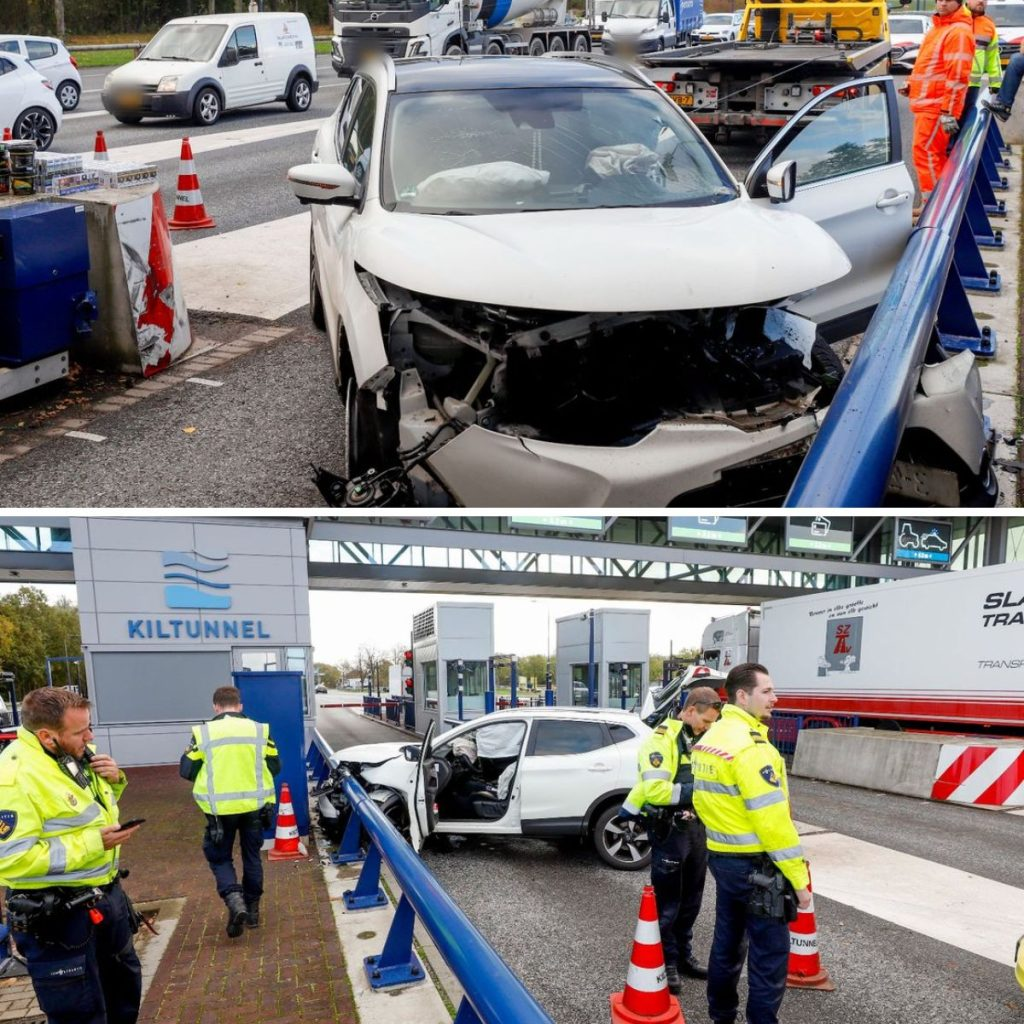 Bij Dordrecht is vrijdagochtend een auto tegen de vangrail geknald bij de tolpoortjes van de Kiltunnel. Niemand van de vier inzittenden raakte gewond. Toen de politie de auto doorzocht deden de agenten een leuke bijvangst.