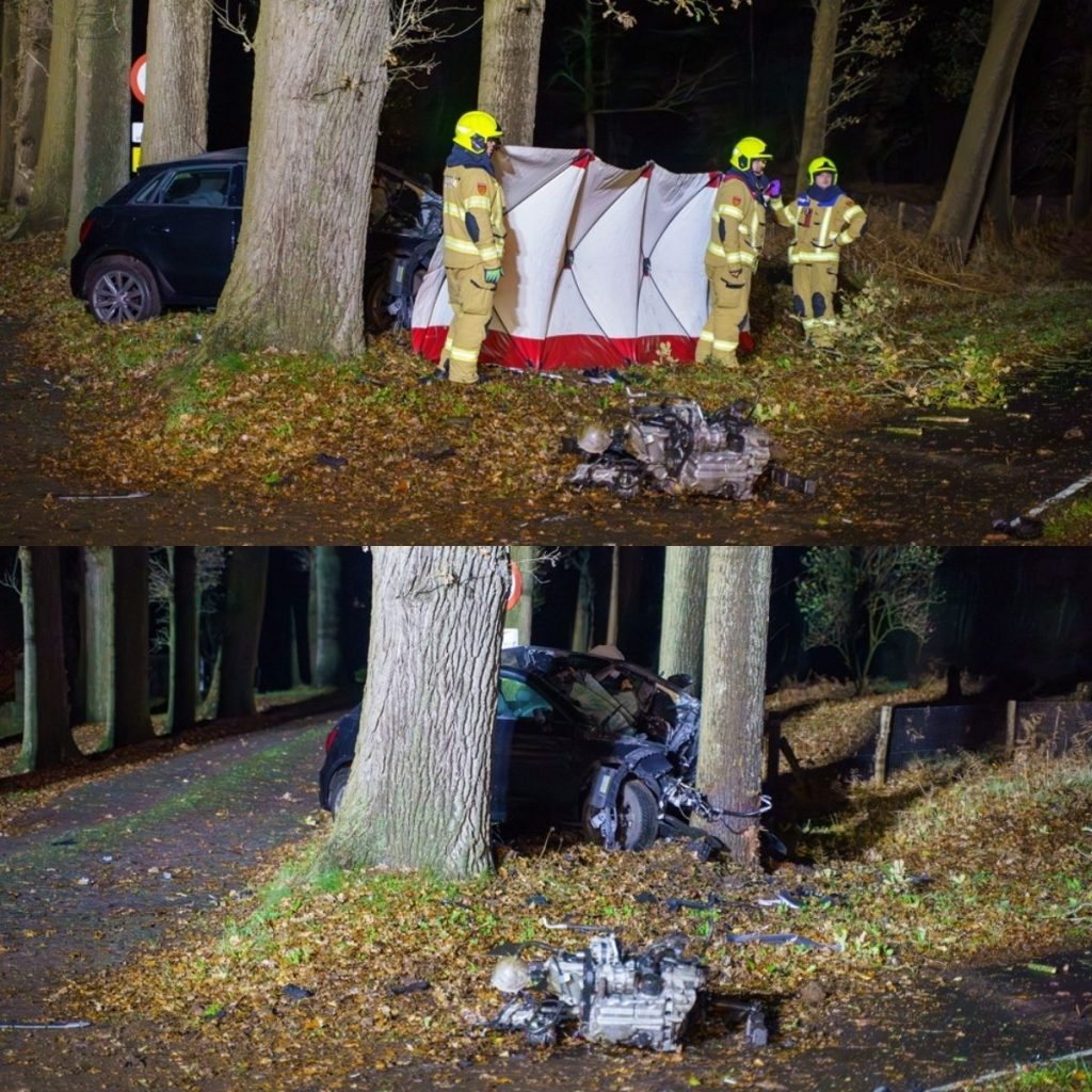 De impact was dusdanig groot dat het motorblok uit de auto werd geslingerd. Hulpdiensten waren snel ter plaatse, maar konden niets meer voor het slachtoffer doen. De weg is voorlopig afgesloten voor onderzoek.