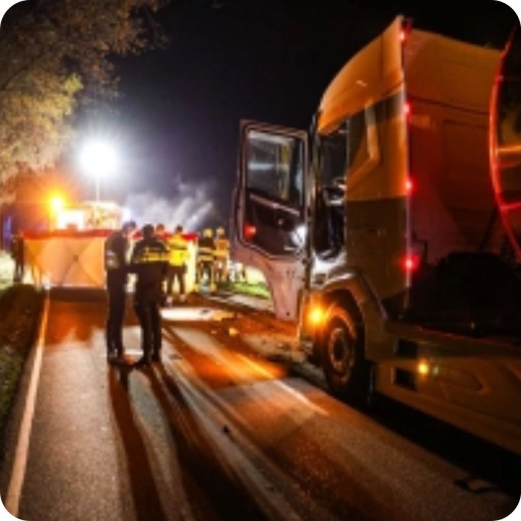 Het ongeluk vond plaats ter hoogte van de Heidelaan. De eerste melding van het ongeval was om 18.58 uur. De bestuurder van de vrachtwagen kwam met de schrik vrij.