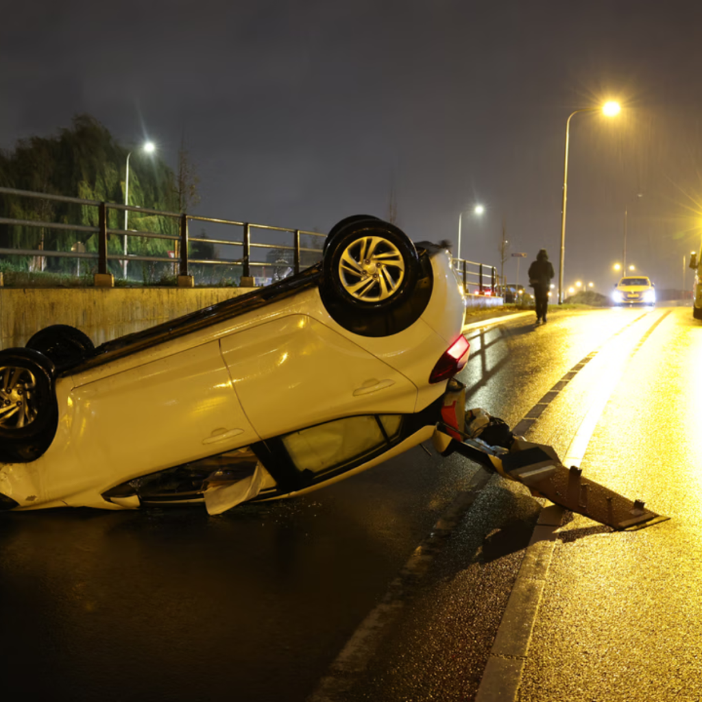 De avond begon in Naaldwijk, waar rond 23.00 uur op de Kesterse Wei bij het Westleeplein een auto over de kop sloeg na een botsing met een lichtmast bij de tunnel onder de N223. De bestuurder wist zelf uit het voertuig te komen, is ter controle naar het ziekenhuis gebracht en later aangehouden op verdenking van rijden onder invloed.