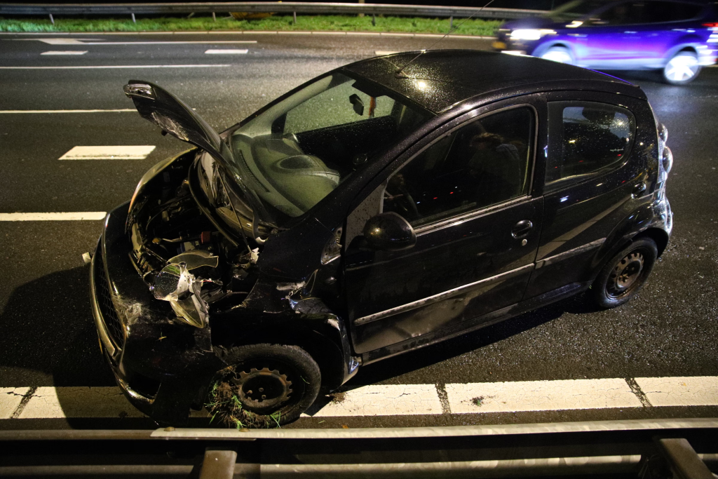 Ook op de A4 bij Den Hoorn was het raak. Door nog onbekende oorzaak verloor een automobilist de macht over het stuur en raakte daarbij de vangrail. Het voertuig raakte aanzienlijk beschadigd, net als de vangrail. De bestuurder is door ambulancepersoneel onderzocht, maar hoefde niet mee naar het ziekenhuis.