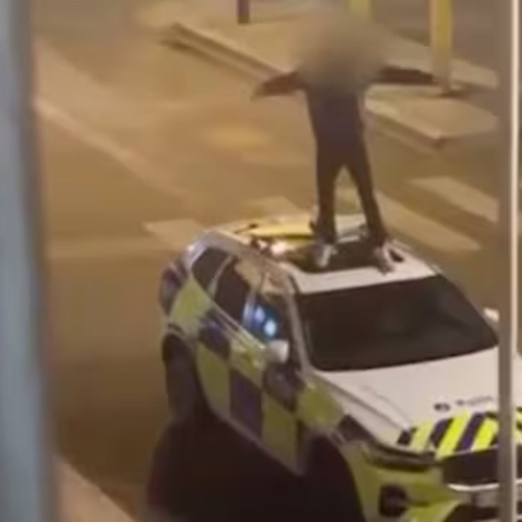 Een twintiger danste dinsdagavond op het dak van een politiewagen aan het station van Kortrijk. © R