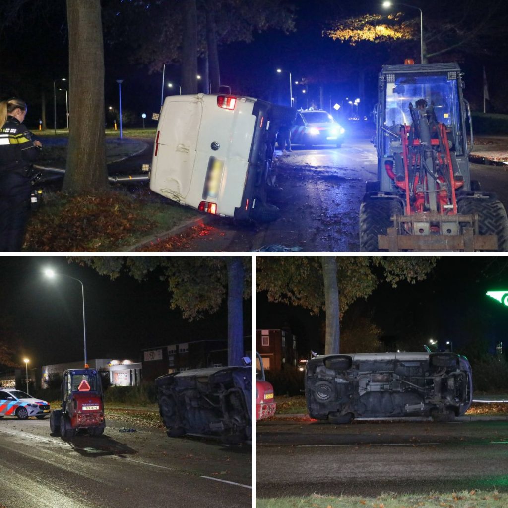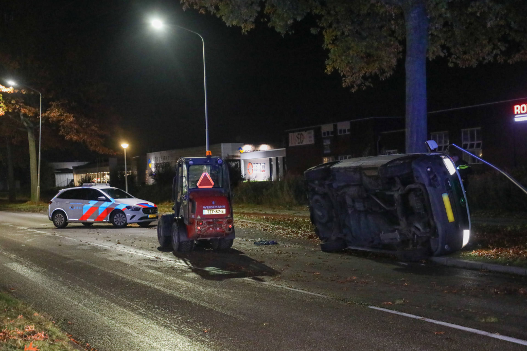 Het incident vond plaats kort na 19.40 uur. De bestuurder van de bestelwagen raakte van de weg en reed een lantaarnpaal omver, waarna het voertuig kantelde. Ambulancepersoneel controleerde de man, maar hij bleek ongedeerd. De bestuurder is wel meegenomen naar het politiebureau voor verder onderzoek, vanwege teveel alcohol op.
