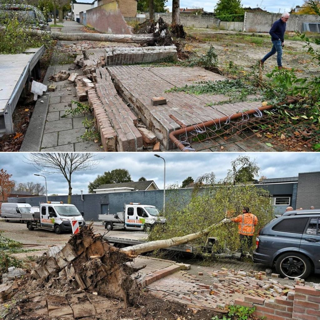 Er raakten geen geparkeerde voertuigen beschadigd. De gemeente is druk bezig om alles op te ruimen.