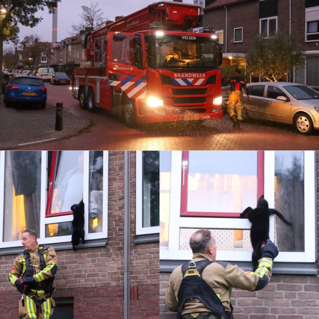 De brandweer kreeg een melding van een bekneld dier en was snel ter plaatse. Met behulp van een trappetje dat zij mochten lenen van een buurtbewoner, konden de brandweerlieden bij het dier komen en de kat voorzichtig bevrijden.