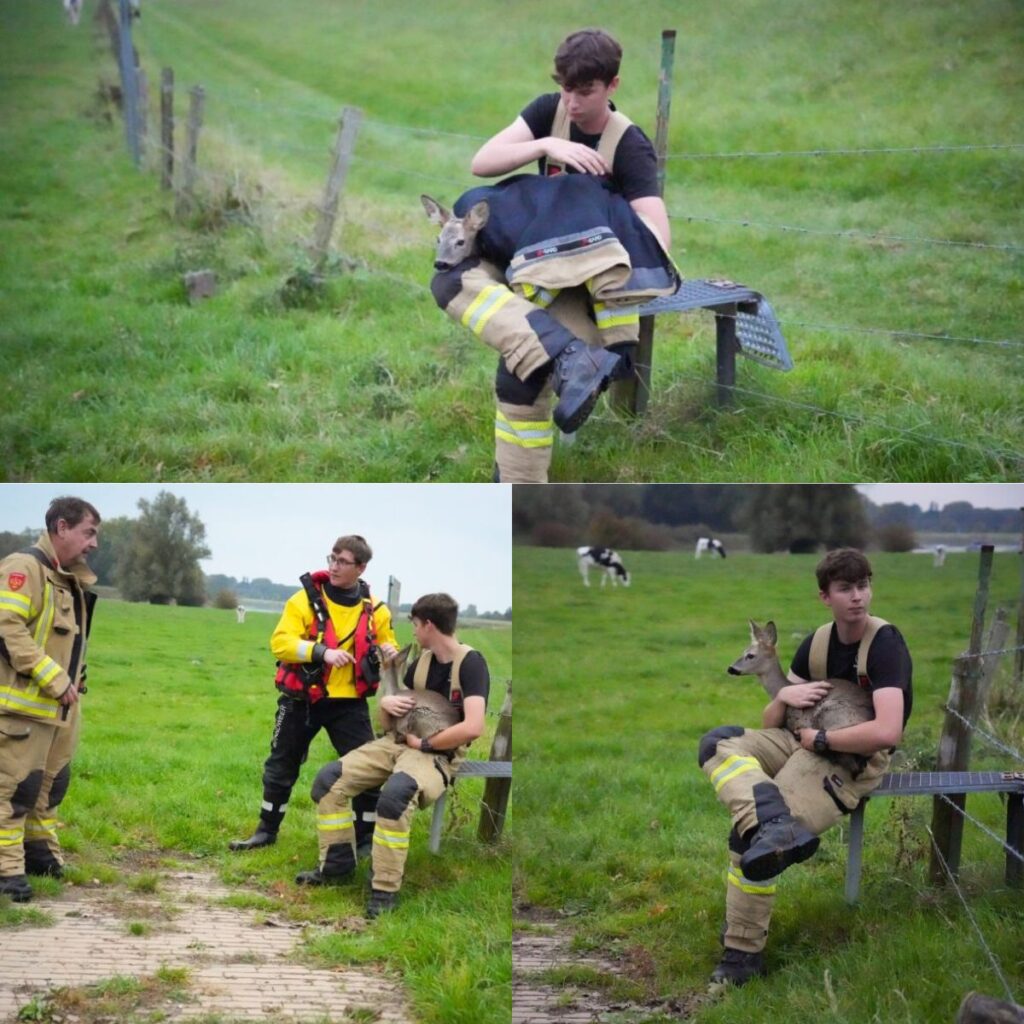 GIESBEEK – Zaterdag aan het begin van de avond is de brandweer uitgerukt naar de Bingerdensedijk in Giesbeek voor een ree in nood.