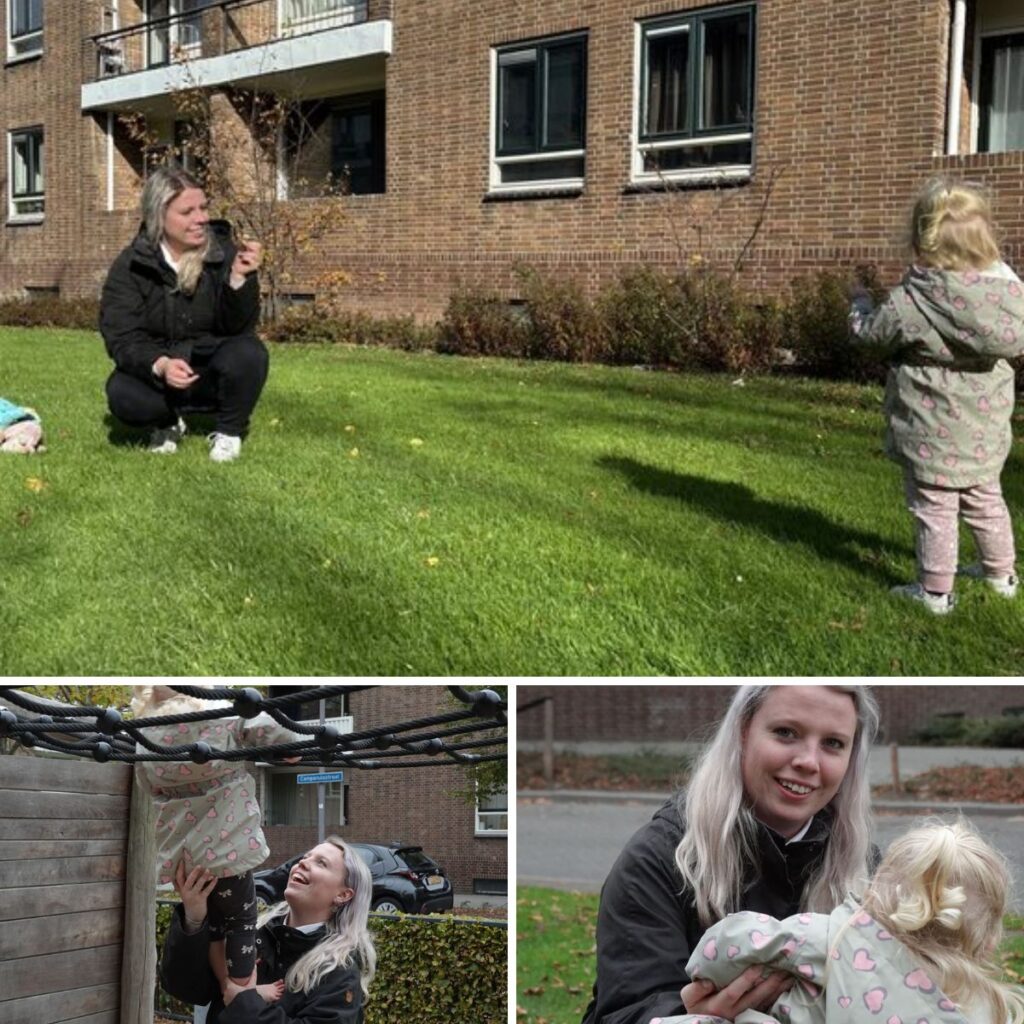 Claire speelt met dochter buiten in Rotterdam-Schiebroek