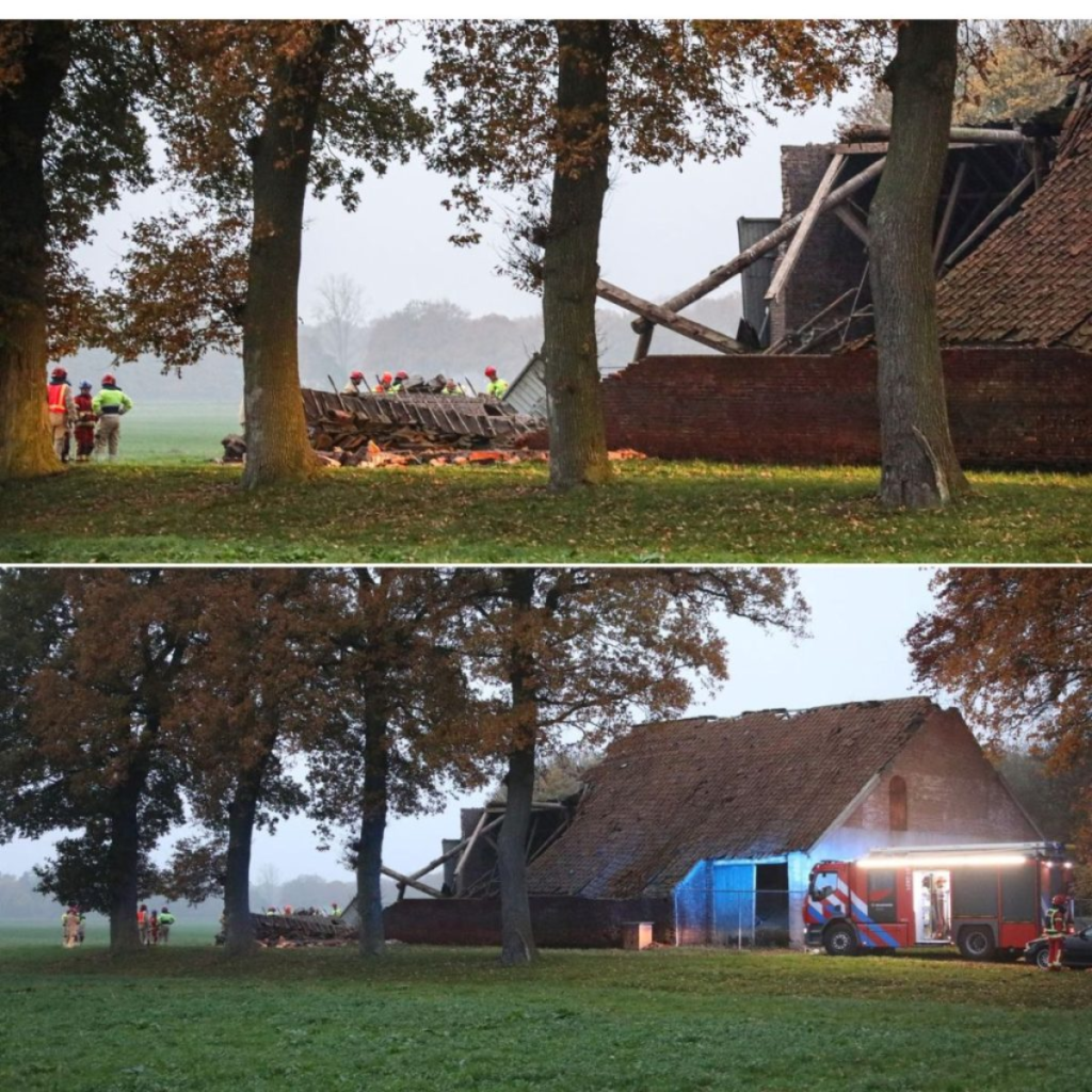 In de ingestorte schuur waren vier mensen aanwezig. Twee van hen zijn ter plekke onderzocht, zij hoefden niet naar het ziekenhuis.