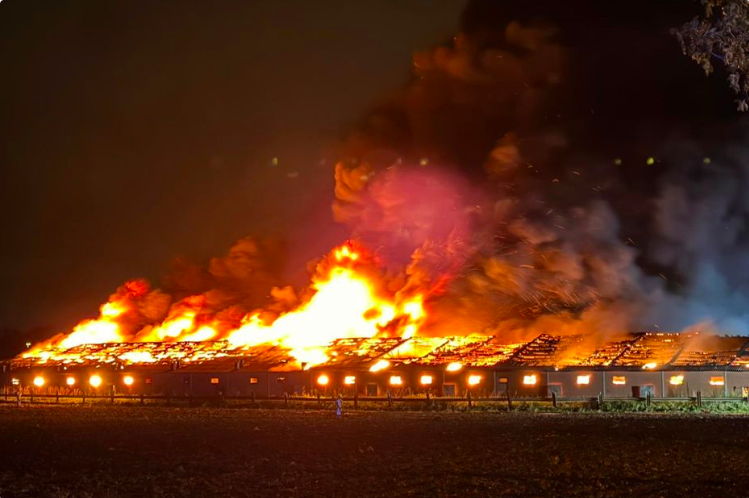 DIETEREN – Maandagmiddag zijn ongeveer 700 varkens om het leven gekomen bij een grote stalbrand aan de Beuningerstraat, tussen het Limburgse Dieteren en de A2.
