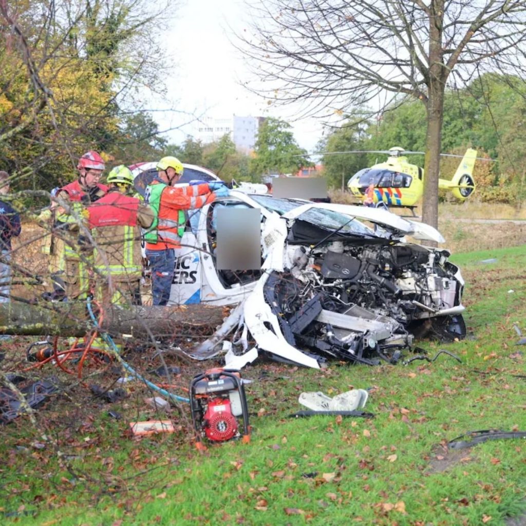 De brandweer was aanwezig om de persoon die klem zit in de auto te bevrijden. De politie heeft het voertuig in beslag genomen om onderzoek te doen naar de oorzaak van het ongeval.