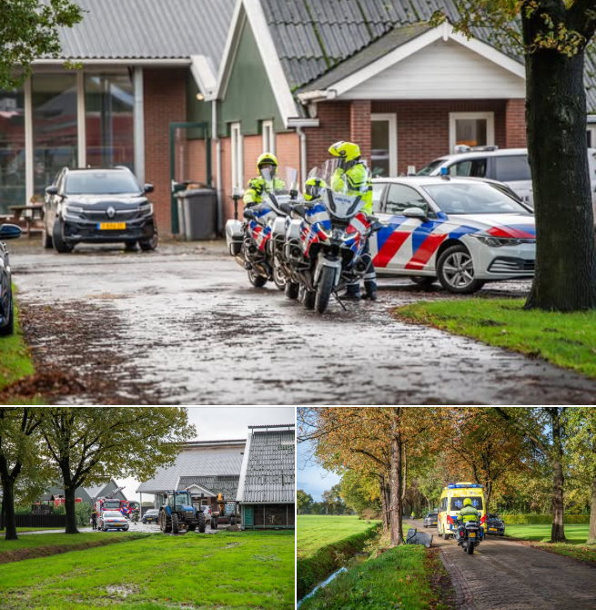 Het incident vond plaats in een koeienstal, waar hulpdiensten met groot materieel ter plaatse kwamen. De brandweer zette onder meer een tankautospuit en een hulpverleningsvoertuig met zwaar gereedschap in. Ook meerdere politie-eenheden en een ambulance werden opgeroepen. De ambulance vertrok later met spoed, onder begeleiding van de politie.