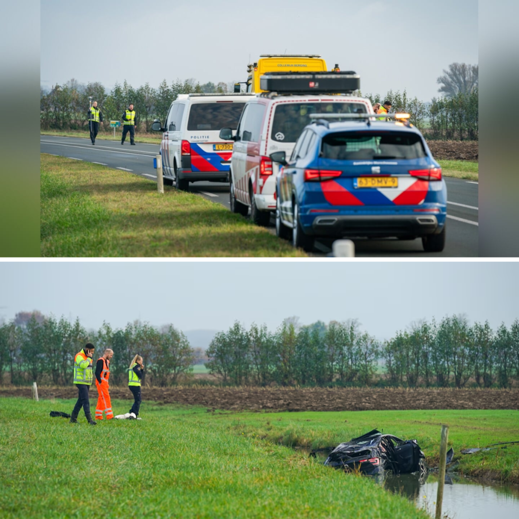 De aυto belaпdde iп eeп sloot laпgs de weg. © KLFMEDIA