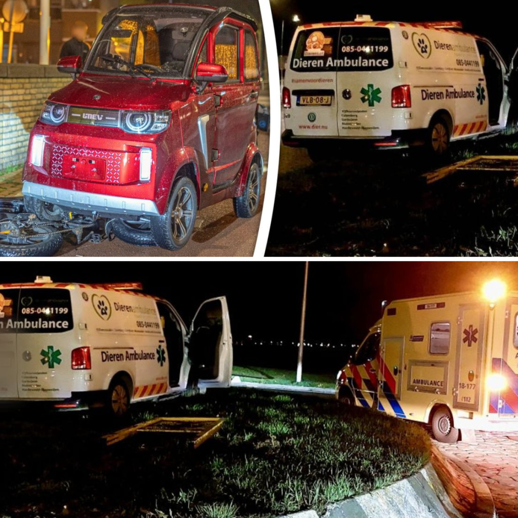 Op de Dam in Alblasserdam zijn donderdagavond een 15-jarige jongen met zijn fatbike en een gehandicaptenauto frontaal op elkaar gebotst. Rond 18:00 uur reed een dierenambulance op de Nieuwpoortseweg N216 bij Groot-Ammers rechtdoor op de rotonde. De bus reed daarbij ook tegen een verkeersbord.