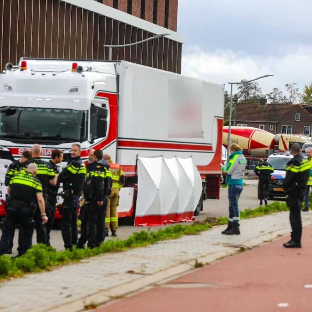 Een fietser is donderdagochtend overleden na een botsing met een vrachtwagen op de Verlengde Parallelweg in Barneveld.