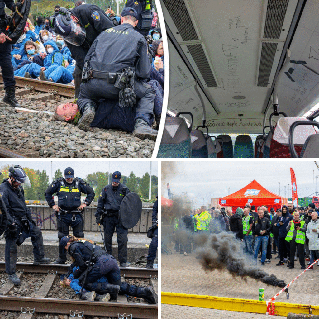 Nu het spoor weer is vrijgegeven, worden de gevolgen van de demonstraties in de Rotterdamse haven duidelijk. Van de ruim 300 actievoerders van Geef Tegengas die zaterdagmiddag van het spoor werden gehaald, zitten er nog 7 vast op het politiebureau. Zowel de politie als Geef Tegengas spreken van geweld en vernielingen. Eén agent is naar het ziekenhuis gebracht.