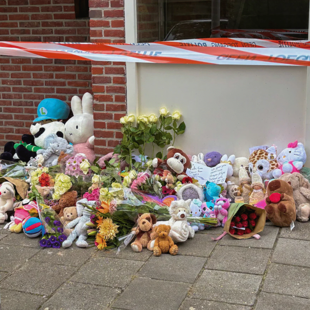 Voor het appartementencomplex in Terneuzen liggen bloemen en knuffels en staan kaarsen. Ook blijven er volwassenen en kinderen langskomen met bloemen of knuffels. Sommigen blijven lang staan bij de ingang van het complex, anderen gaan direct weer weg.
