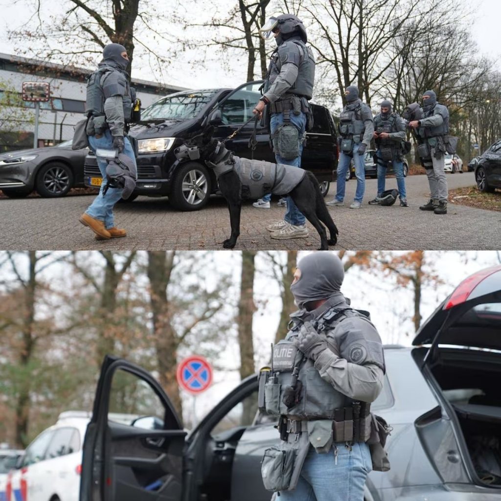 Tientallen agenten van de Dienst Speciale Interventies staan bij de gevangenis in Vught (foto: Persbureau Heitink).