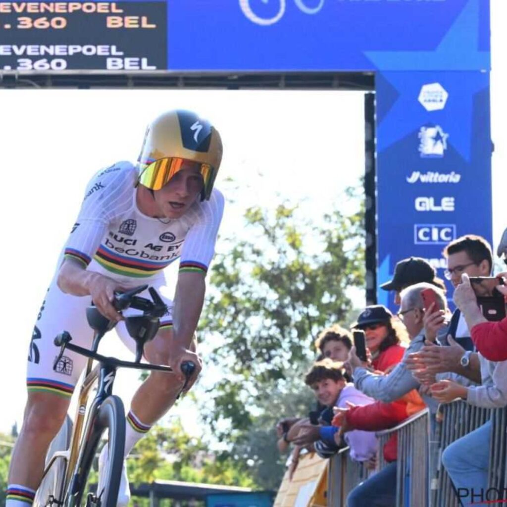 De verwachte concurrentie, waaronder Filippo Ganna, kon geen vuist maken tegen de Belgische renner. Evenepoel reed een foutloze tijdrit en bevestigde zijn suprematie in deze discipline.