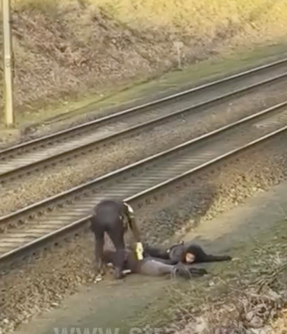 Op dat moment sprint een agent naar voren, grijpt de jongen stevig vast en trekt hem van het spoor. De actie verloopt ruw en onverwacht – en dat is precies wat de discussie losmaakt.