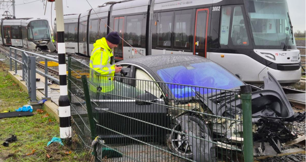 Het ongeluk gebeurde rond 06.00 uur bij de Randweg. De auto reed door de dichte spoorbomen en kwam op het spoor terecht. Een naderende tram botste daarna op de auto. De tram ontspoorde en de bovenleiding brak af. Buurtbewoners hoorden vanochtend een harde knal toen dat gebeurde.