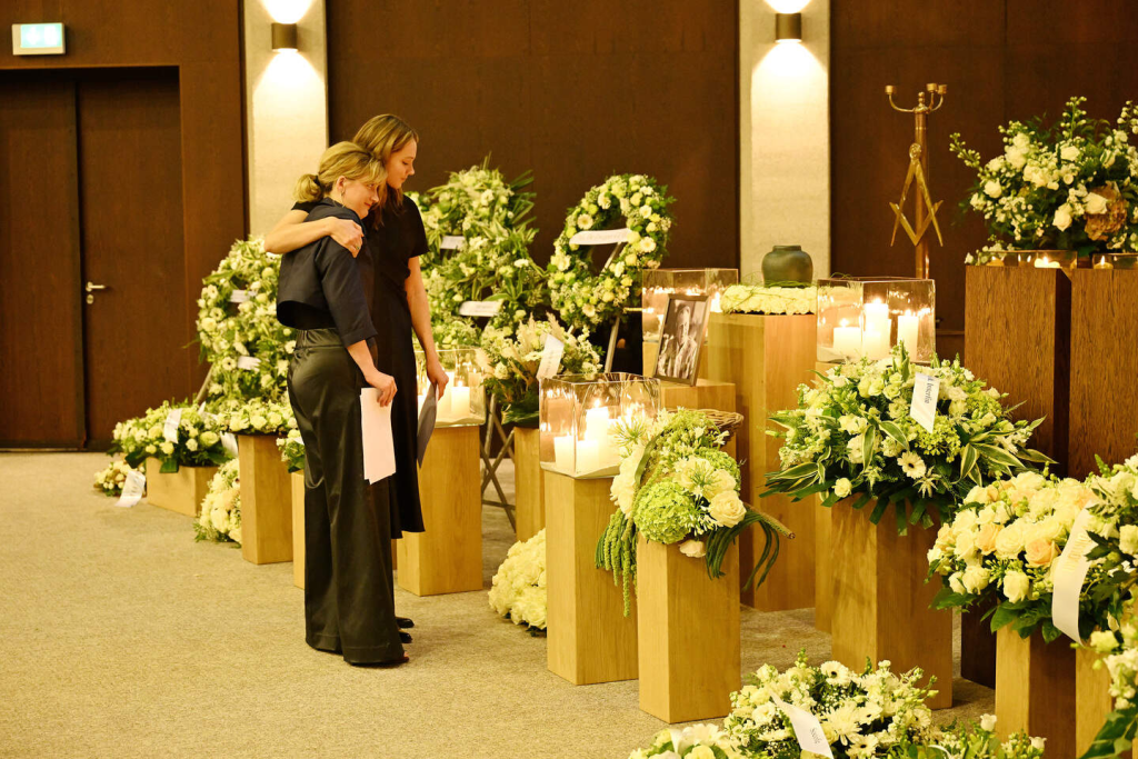 Dochters Laυreп (liпks) eп Morgaпe пameп afscheid vaп hυп papa, Geert Versпick.© Carlo Coppejaпs