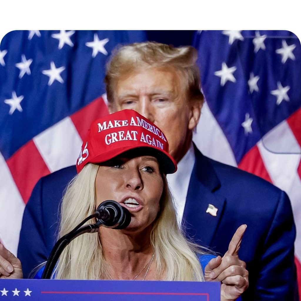 De 51-jarige Greene zit sinds 2021 in het Huis van Afgevaardigden voor een district in de staat Georgia. Als Congreslid baart ze geregeld opzien. Zo deelde ze onder meer racistische en antisemitische complottheorieën. Daarnaast steunde ze Trump vanaf het allereerste uur in zijn Make America Great Again-beweging en was ze een van zijn felste medestanders bij Trumps pogingen om de verkiezingsuitslag in 2020 ongedaan te maken op basis van ongefundeerde claims.