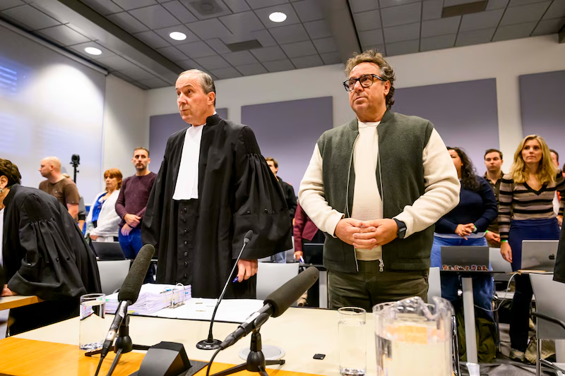 Marco Borsato in de rechtbank, met naast hem zijn advocaat Knoops. © NLBeeld