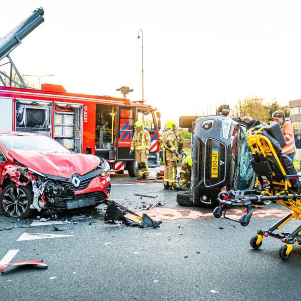 De vrachtwagencombinatie met aanhanger was onderweg naar een “schrootboer”, zoals de medewerker het vertelde. De chauffeur kon zelf niet uit de cabine komen en moest daarbij geholpen worden door de brandweer.