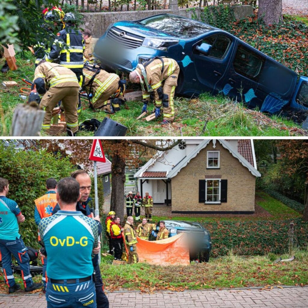Het busje is in een sloot beland. De brandweer heeft het water doorzocht om te controleren of daar nog iemand lag, maar dat bleek niet het geval.