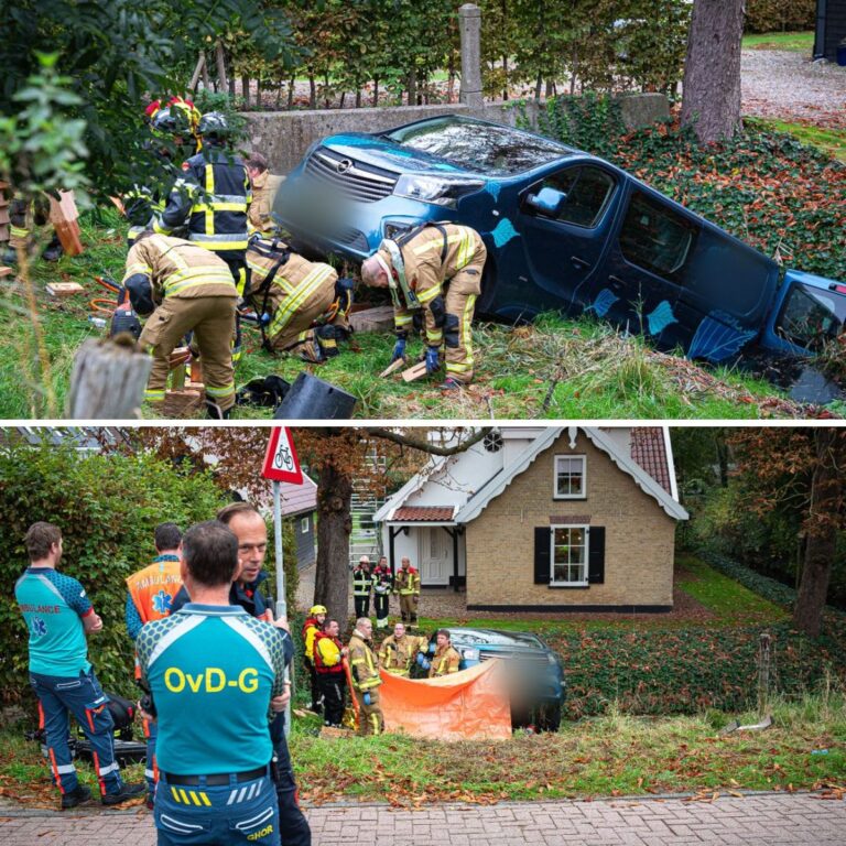 Het busje is in een sloot beland. De brandweer heeft het water doorzocht om te controleren of daar nog iemand lag, maar dat bleek niet het geval.