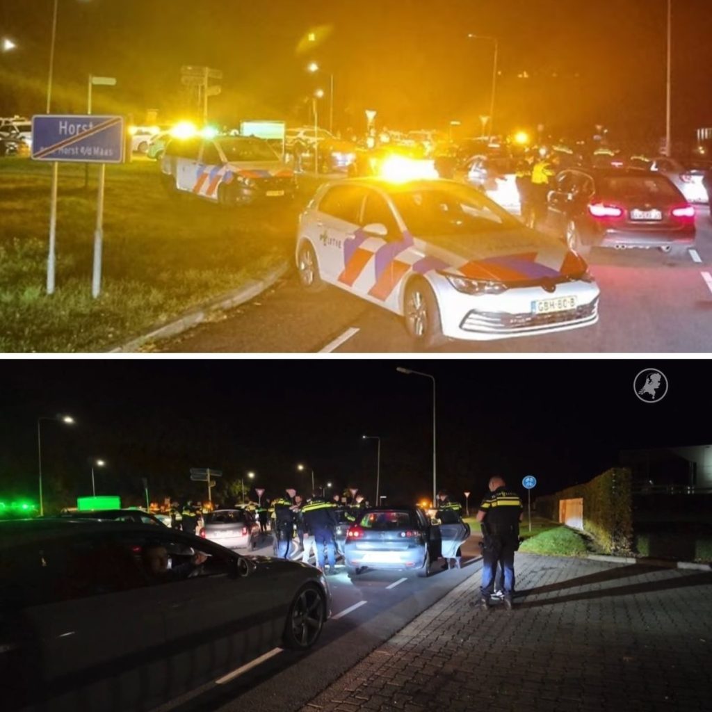 HORST – Een groep ‘autoliefhebbers’ verzamelde zich vrijdagavond op een parkeerplaats aan de Witveldweg in Horst. Alles wees erop dat er sprake was van een carmeeting. De politie was snel ter plaatse en greep in. Alle aanwezigen, 1000 personen, kregen een bekeuring voor het samenscholen. Kort na de melding van de carmeeting in Horst kwam het bericht dat zich ook in Maasbree auto’s verzamelden. Ook daar trad de politie op. Er is een persoon aangehouden omdat hij een nepwapen bij zich droeg.