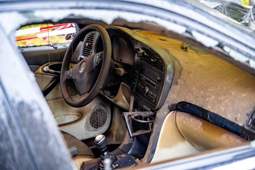 Het interieur raakte zwaar beschadigd door de brand. De hitte zorgde ervoor dat veel van de bekleding smolt en het volledige binnenwerk zwartgeblakerd achterbleef.