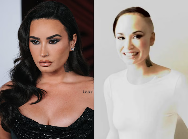 De originele beelden zijn niet eens zo slecht. Lovato’s haren zitten strak in een knot en ze draagt een witte jurk met glitterband en veren bij de rok. Een fan van de Sorry not sorry-zangeres besloot de beelden echter te bewerken. Daarop is haar hoofd iets breder gemaakt, staat ze volop in het witte licht en lijkt ze daardoor kaal aan één kant van haar hoofd.