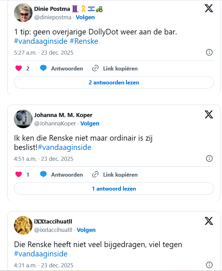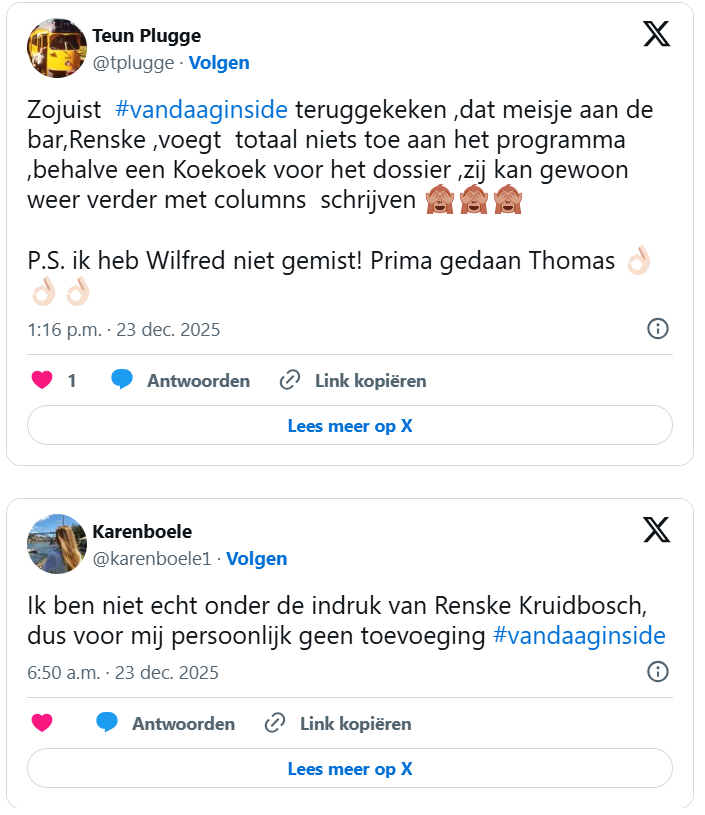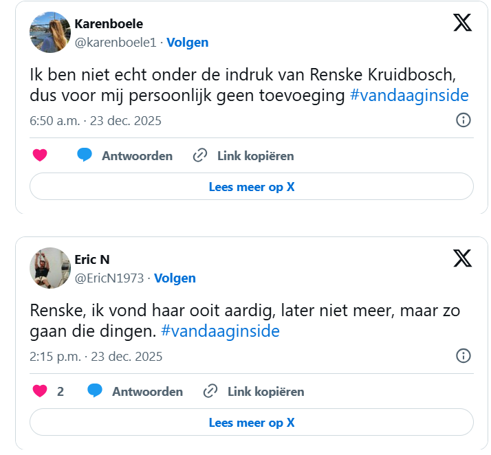 Wat zeggen de kijkers van Vandaag Inside over Renske Kruitbosch?
