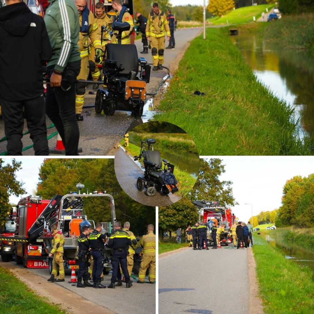 Aan het Stille Pad in Elst is zaterdagmiddag rond 13.00 uur een persoon met een elektrische rolstoel te water geraakt.