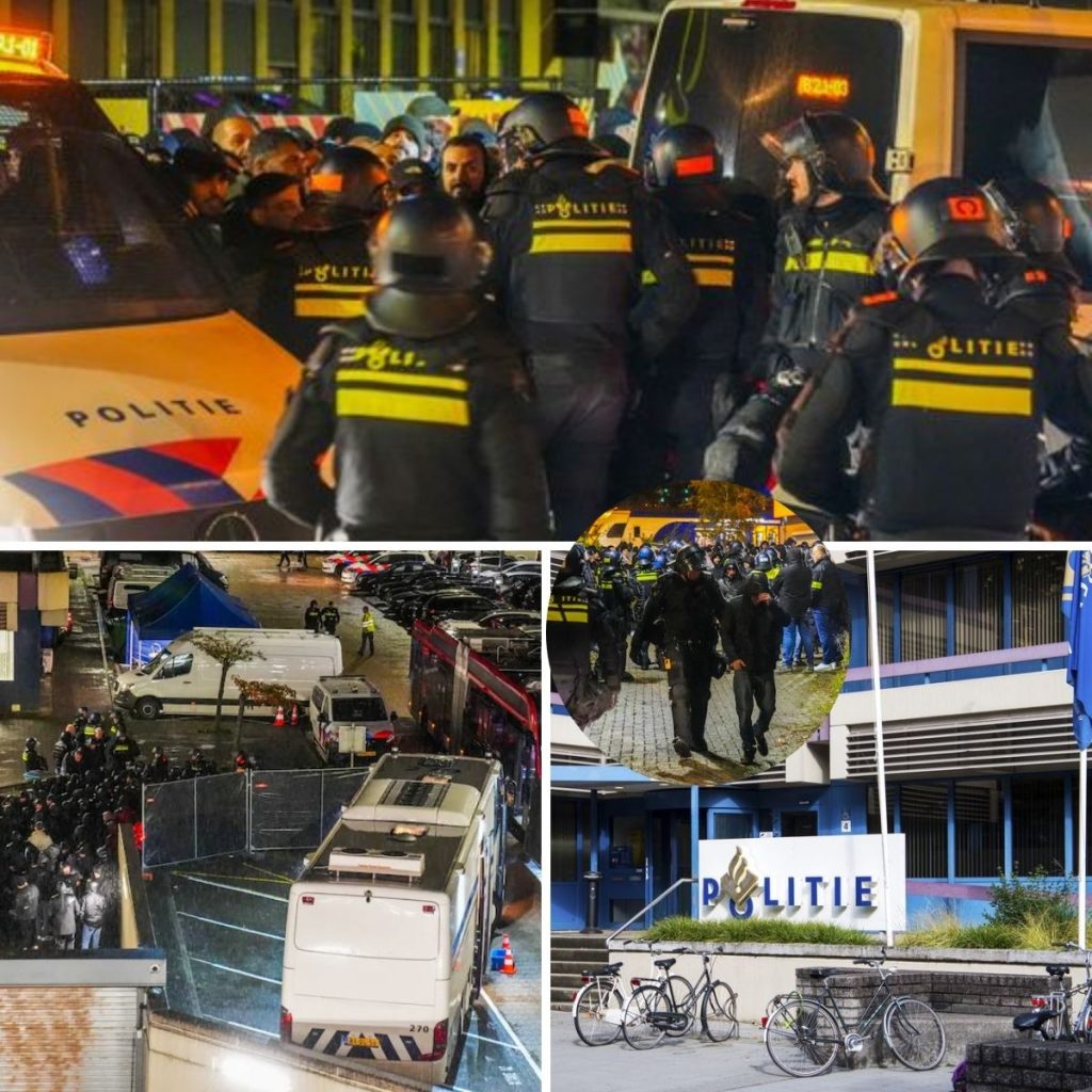 De aanhouden supporters zijn met een bus naar het politiebureau vervoerd, waar zij verder verhoord zullen worden, schrijft de politie op X.