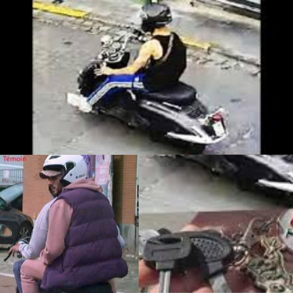 “De verdachte is een jonge man. Hij droeg op het ogenblik van de feiten een zwart T-shirt zonder mouwen, een felblauwe trainingsbroek met witte strepen, witte sportschoenen van het merk Nike, een zwarte helm met wit logo achteraan en een bruine schoudertas.”