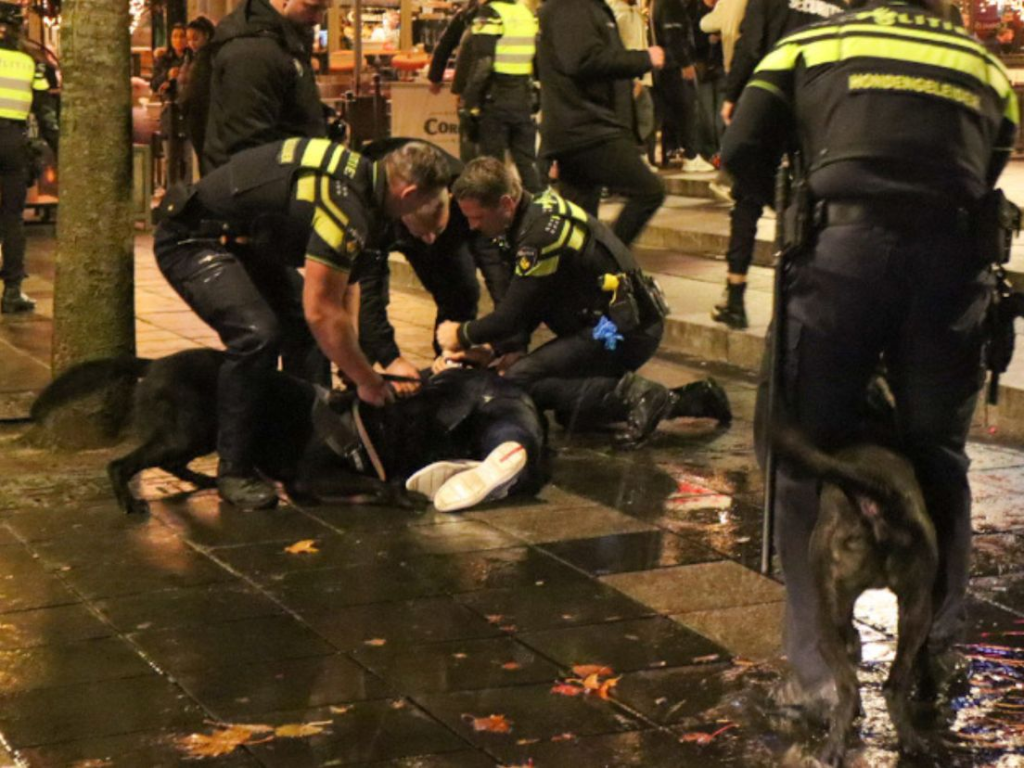 Ook Kees mocht happen toen een stukje verderop een andere verdachte op de vuist ging met een agent en een beveiliger. “Hierdoor konden beide verdachten worden aangehouden. Ze zijn behandeld door een arts”, meldt het hondenteam.