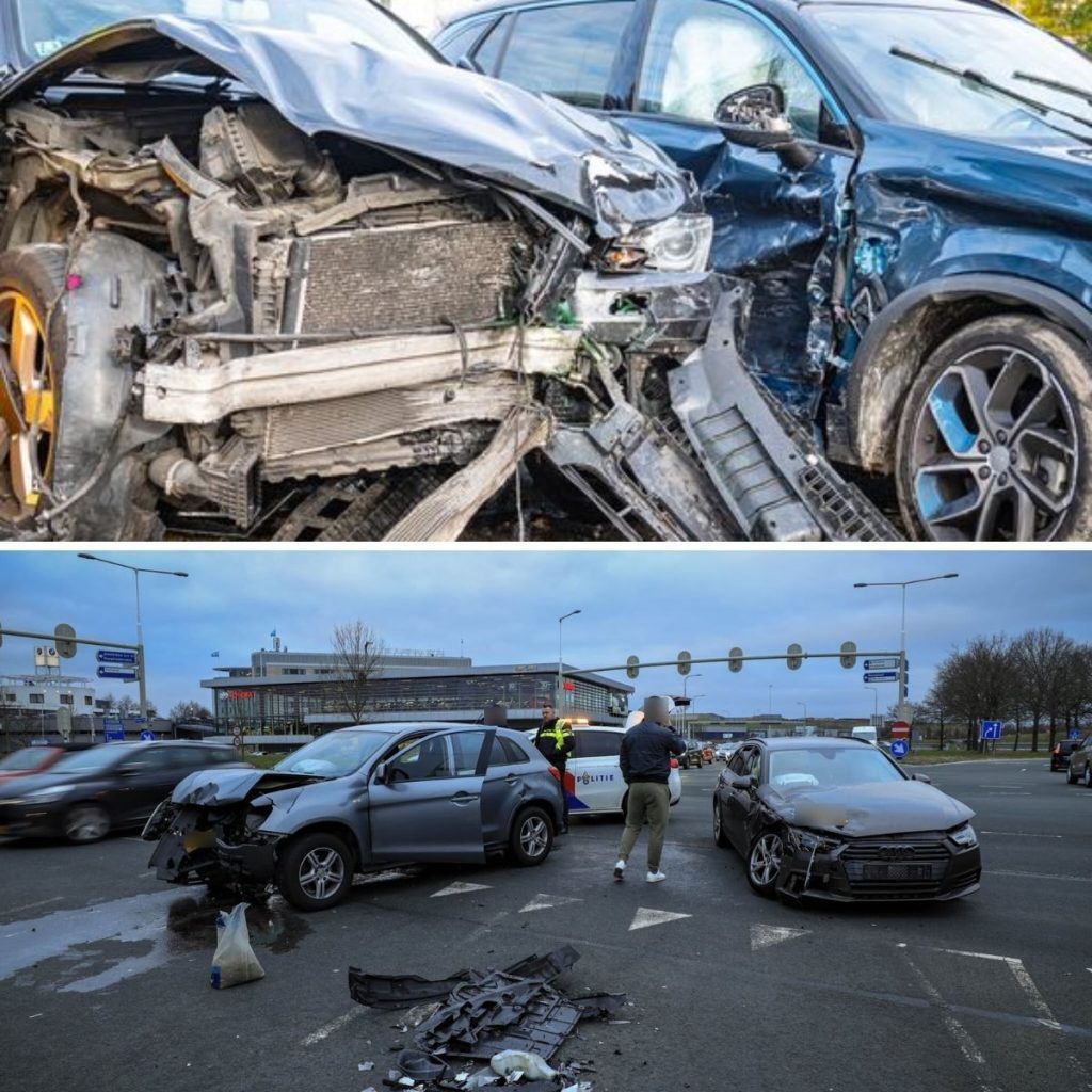 Op de kruising van de Pascalweg met de Spinozaweg in Rotterdam-Lombardijen zijn dinsdagochtend twee auto’s met elkaar in botsing gekomen. Een van de voertuigen kwam tot stilstand tegen een lantaarnpaal. De schade is enorm, beide auto’s zitten aan de voorkant flink in elkaar. Wat er precies misging is nog onduidelijk.